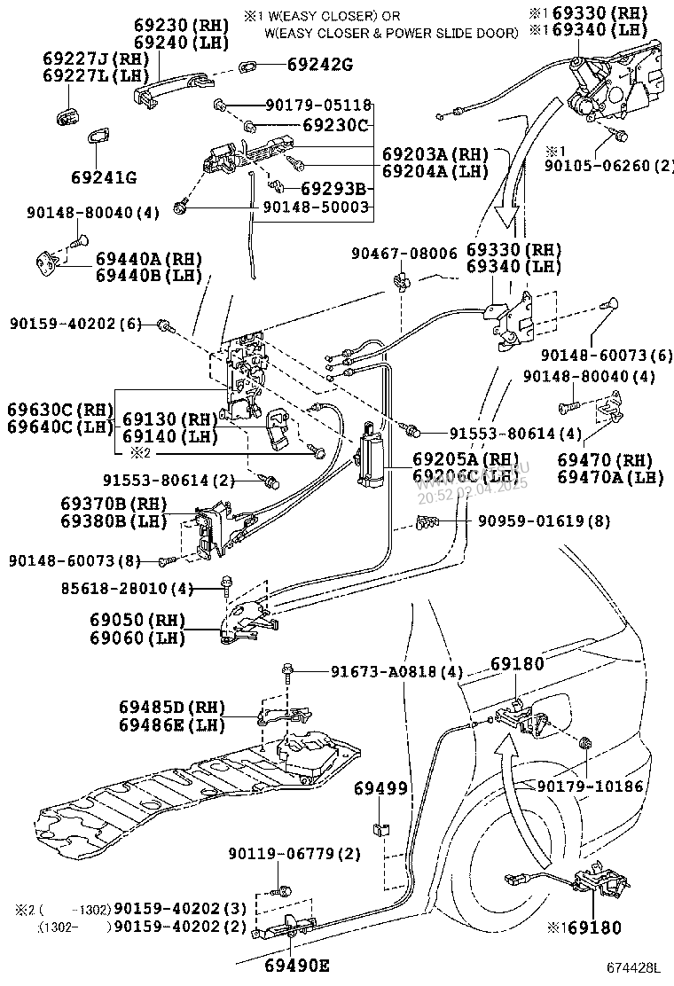 Toyota estima sliding door parts.